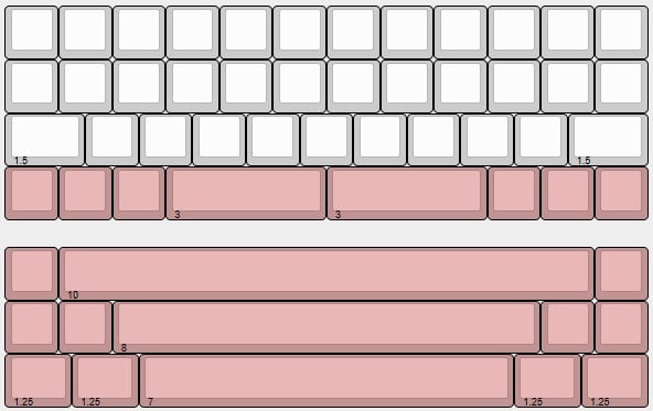This board is 12u, alpha stagger, leafspring tadpole mount, and forced solder