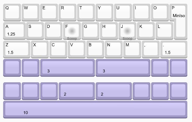 This board is 10u, uniform stagger, and forced miniISO (TAE):